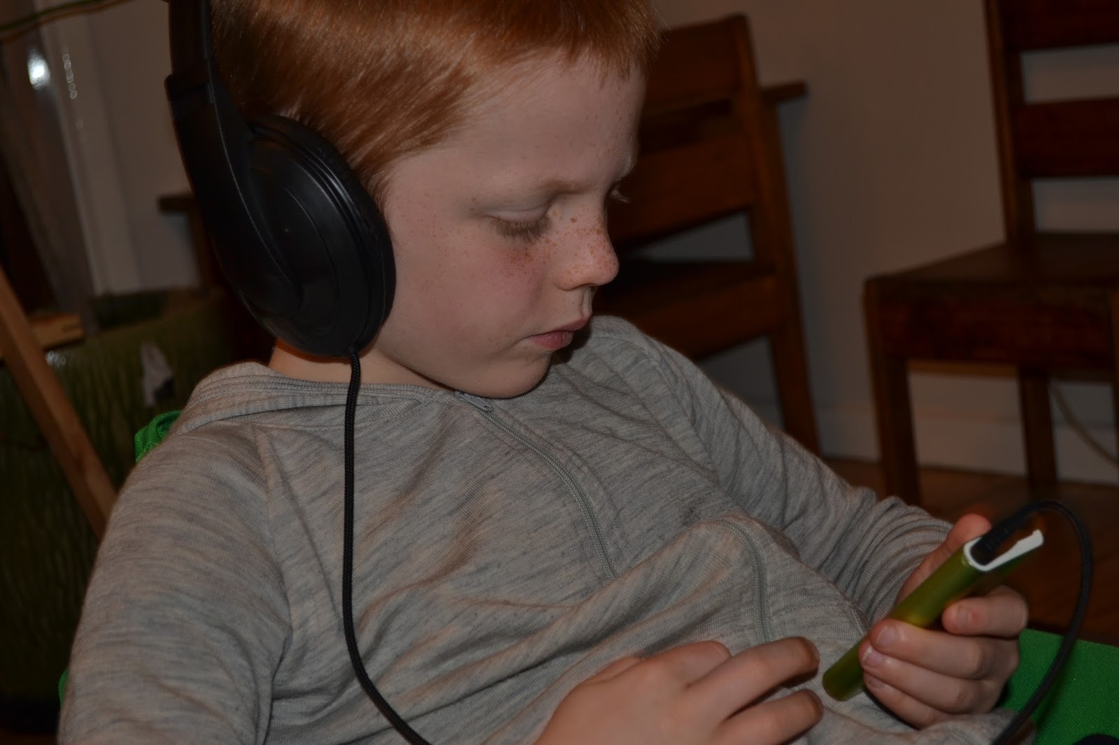 Orlando: A view into the future... he discovered my old iPod so we set it up with audio books... silent morning bliss